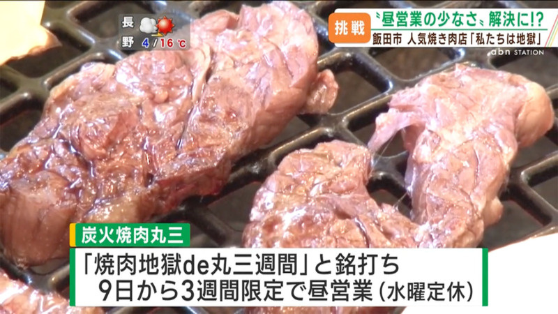 長野朝日放送『abnステーション』番組内で飯田焼肉月間に合わせて現在開催されている限定ランチ企画「焼肉地獄de丸三週間」が紹介されました。